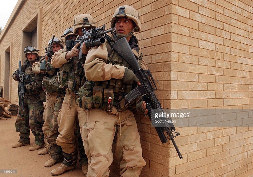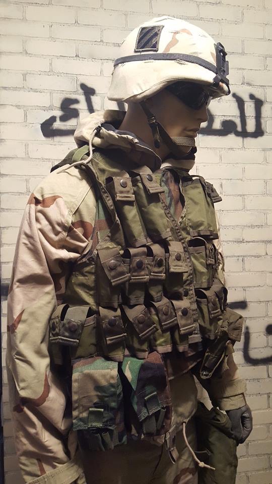 The exhibit of 3rd Infantry Division grenadier during the invasion of Iraq in 2003. His main weapon (Not shown) would’ve been M203 (40mm grenade launcher) mounted on M-16A4 and in some cases, M4.