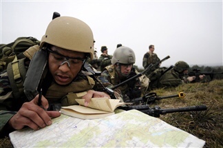 “U.S. Air Force Staff Sgt. Peter Davey (left) and Tech. Sgt. James Godlew, both from the 8th Air Support Operations Squadron tactical air control party out of Aviano Air Base, Italy, provide grid coordinates during an air strike exercise in support of Allied Strike II at the Grafenberg firing range in Germany on Nov. 7, 2008. Allied Strike II is a combined U.S. and coalition forces exercise that trains joint terminal attack control members in preparation for deployments in support of Operations Iraqi and Enduring Freedom.” Image and quote source: defense.gov