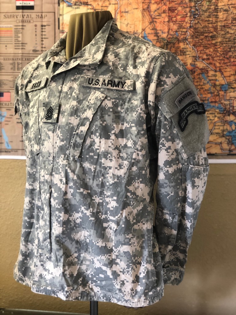 AWG operators were issued unique uniform set made by Paraclete for field wear. It has many features differs from standard ACU set such as Velcro style, pockets placements. AWG seldomly worn unit shoulder sleeve Insignia on operations.