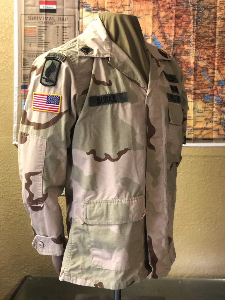 This DCU belonged to SSG Burke. Before he He was with the 173rd Airborne Brigade during the invasion of Iraq and participated in the Operation Northern Delay; a combat jump into Northern Iraq. His name is listed under chalk 5 in the published combat jump manifest.