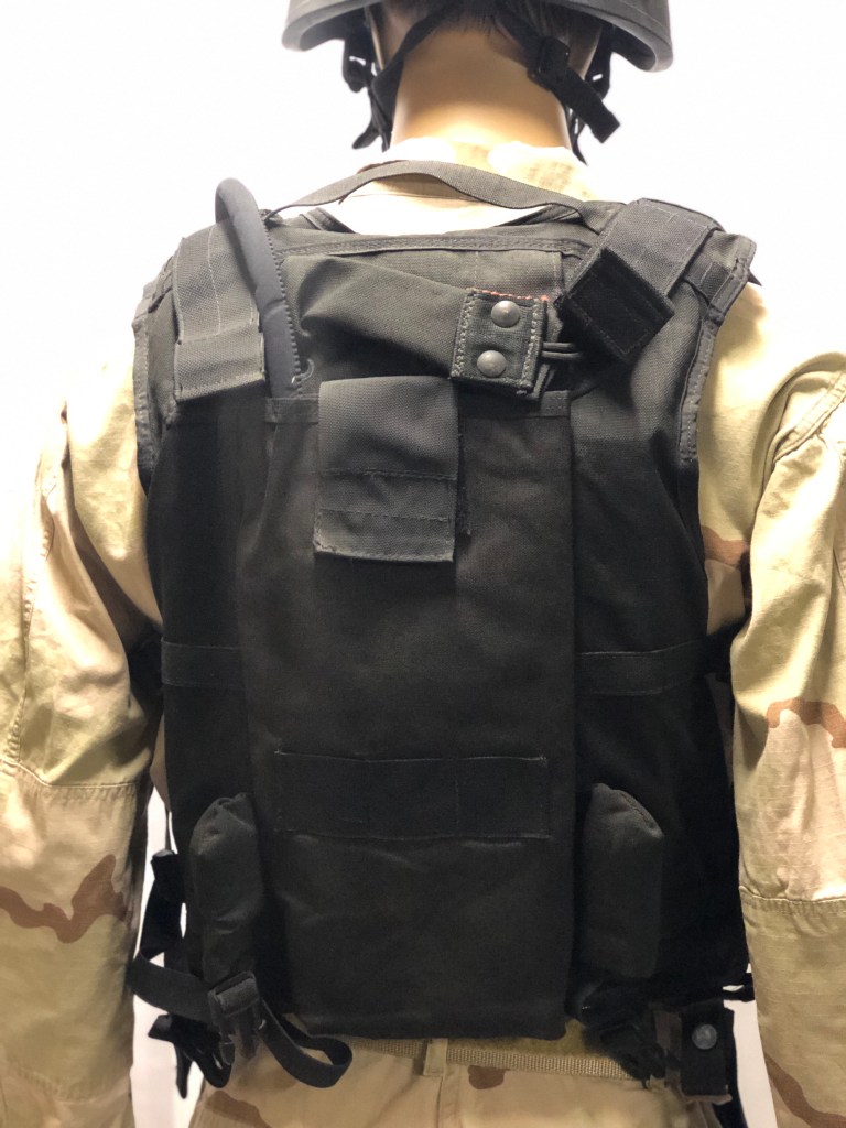 The plate carrier is MBSS system by Allied Industries. It could either carry ballistic plates or flotation panels. It was lower profile alternative to SPEAR body armor which was also used at the time.
